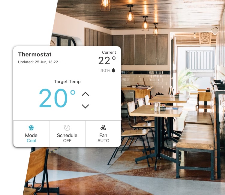 Ta grep om energistyring i bedriftens lokaler. Med flere tiltak kan energi spares. Det kan være styring av termostater i rom, benytte automatiseringer når lokalene er i bruk for opp og nedregulering av temperatur, styre screens/ ytre solskjerminger og knytte styring av solcellepanel inn i systemet.